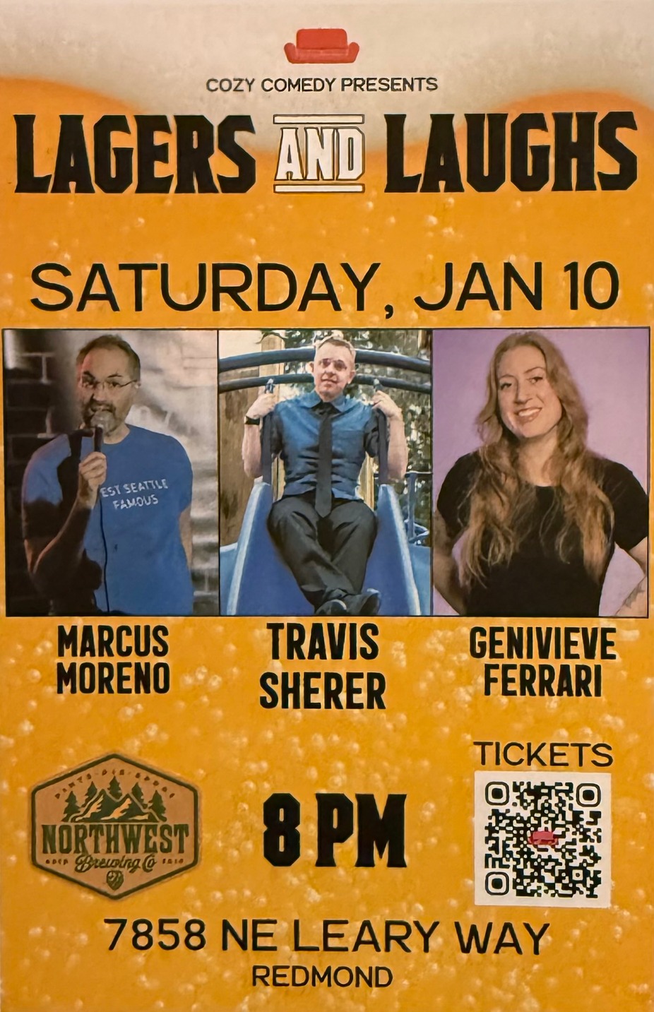 Comedy Headliner and Co-Owner of Cozy Comedy productions Travis Sherer takes the stage at Northwest Brewing in Redmond!
